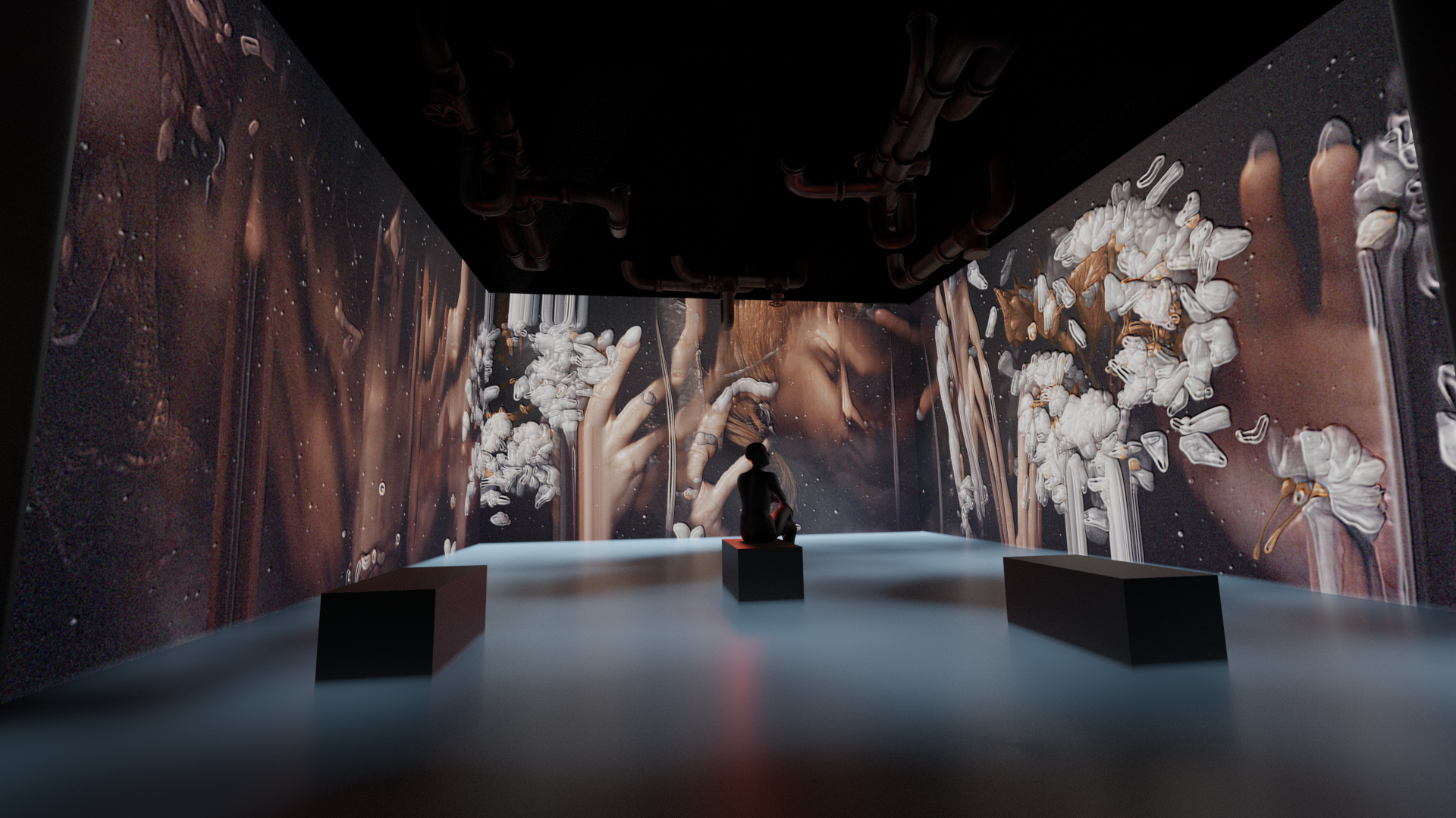 This project is a representation of that personal Hell. A constant reminder that there is always beauty to be found even in the darkest places. Implementing a mixture of natural elements of flowers and skin tones, I used ominous imagery of melting faces and crawling hands to create this looping carousel of the battling playground I navigate in my own mind. When I learn to embrace my own hellscapes, I am able to create peace amidst the chaos. I embrace my demons and remember that I create my own heaven from the depths of my own hell.